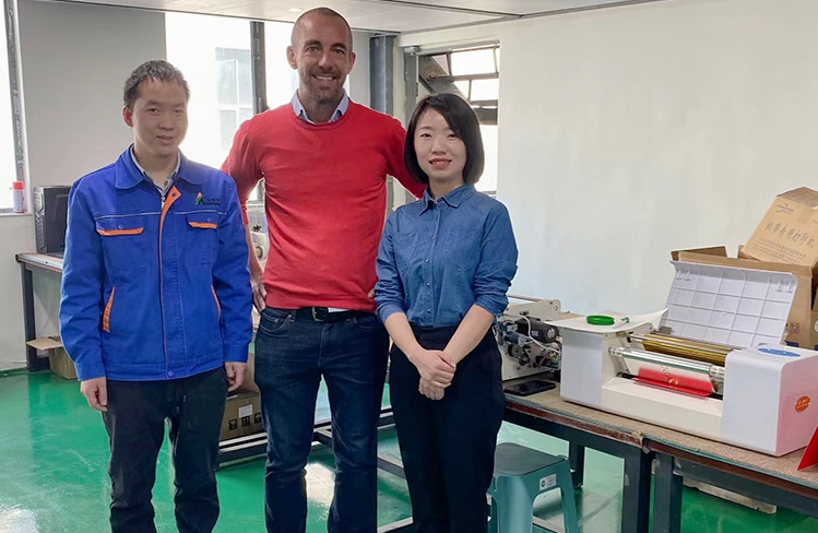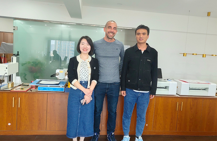 Mark came to our office, it is a great honor that Mark can speak a little Chinese. Each of our employees greeted Mark warmly. Mark said that he would like to thank our product after-sales personnel in particular. He said that our employees are very patient with the products they are responsible for and can actively deal with problems.Mark said that he is very satisfied with our digital foil printer, and we have a good cooperation.